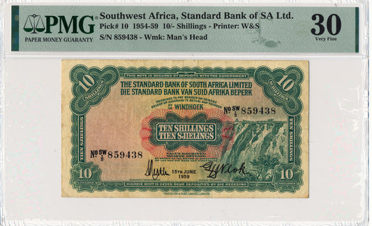 SOUTHWEST AFRICA Standard Bank P.10 1959 10 shillings VF 30