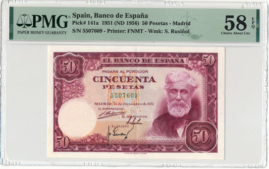 SPAIN P.141 1951 50 Pesetas Choice AUNC 58 EPQ