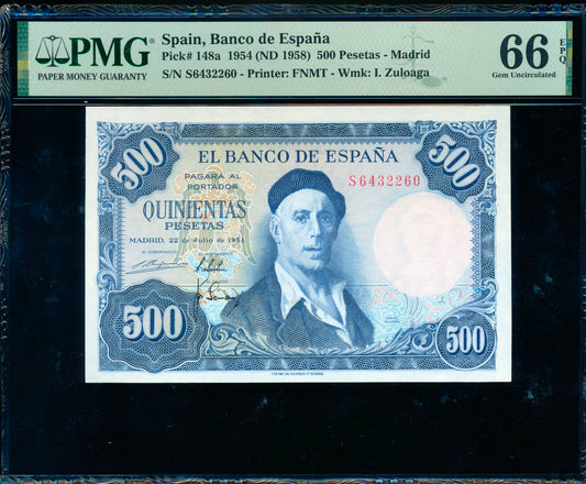 SPAIN P.148a 1958 50 Pesetas 66 EPQ GEM UNC