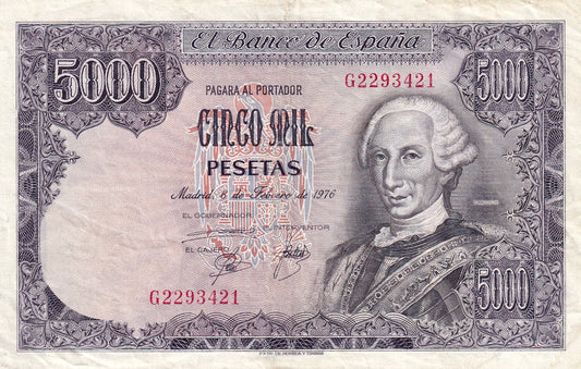 SPAIN P.155 1976 5000 Peseta EF