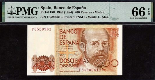 SPAIN P.156 1980 200 Peseta GEM 66 UNC
