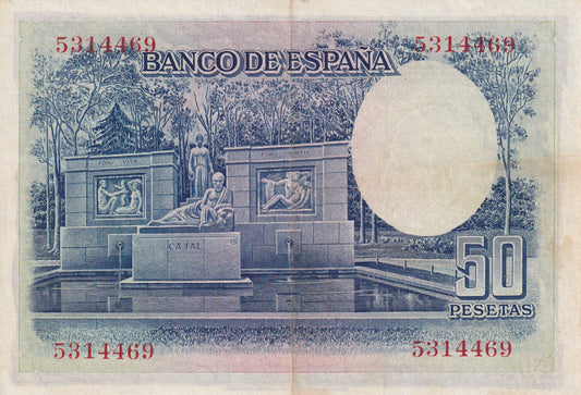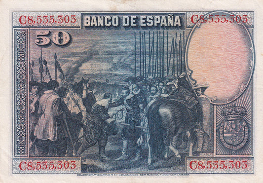 SPAIN P.75c 1928 50 Peseta EF