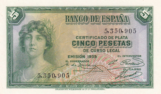 SPAIN P.85 1935 5 Peseta UNC