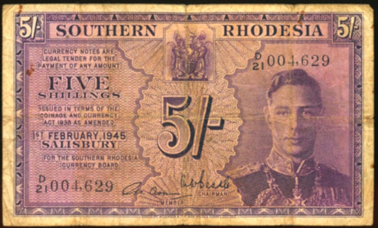 SOUTHERN RHODESIA P.8b 1945 5 Shillings F
