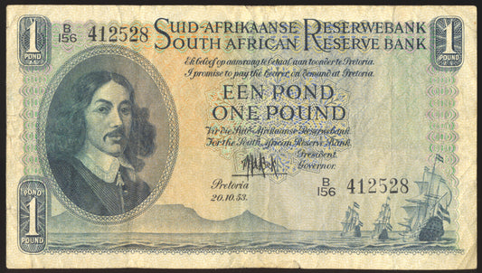 SOUTH AFRICA P.92d 1953 1 Pound VF B/156