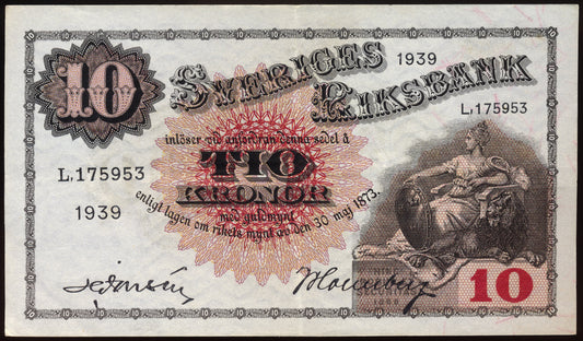 SWEDEN P.34v 1939 10 Kronor EF