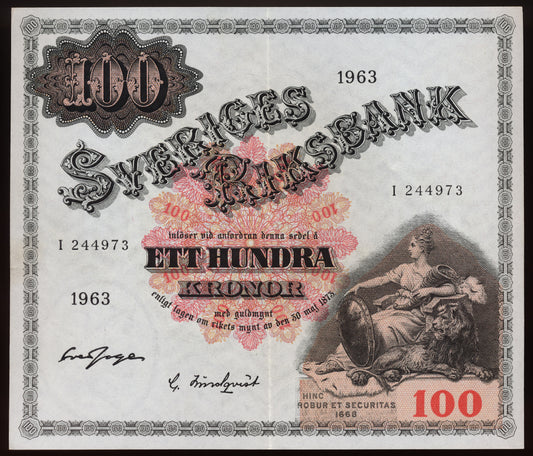 SWEDEN P.48e 1963 100 Kronor AUNC