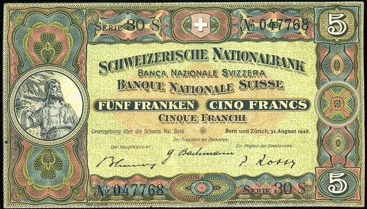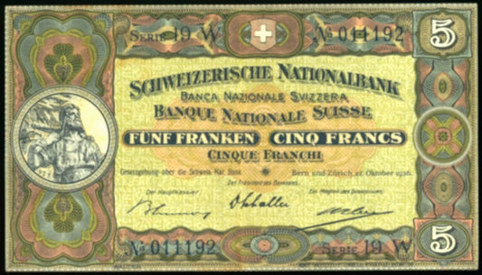 SWITZERLAND P.11h 1936 5 Franken F