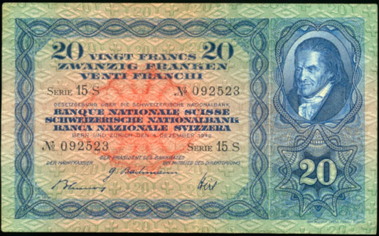 SWITZERLAND P.39l 1942 20 Franken NEF