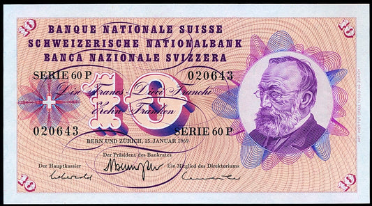 SWITZERLAND P.45o 1969 10 Franken UNC