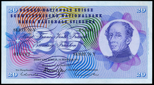 SWITZERLAND P.46s 1969 20 Franken UNC