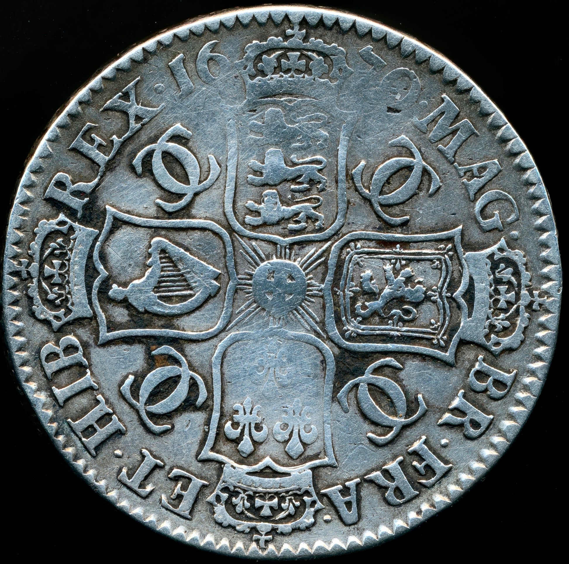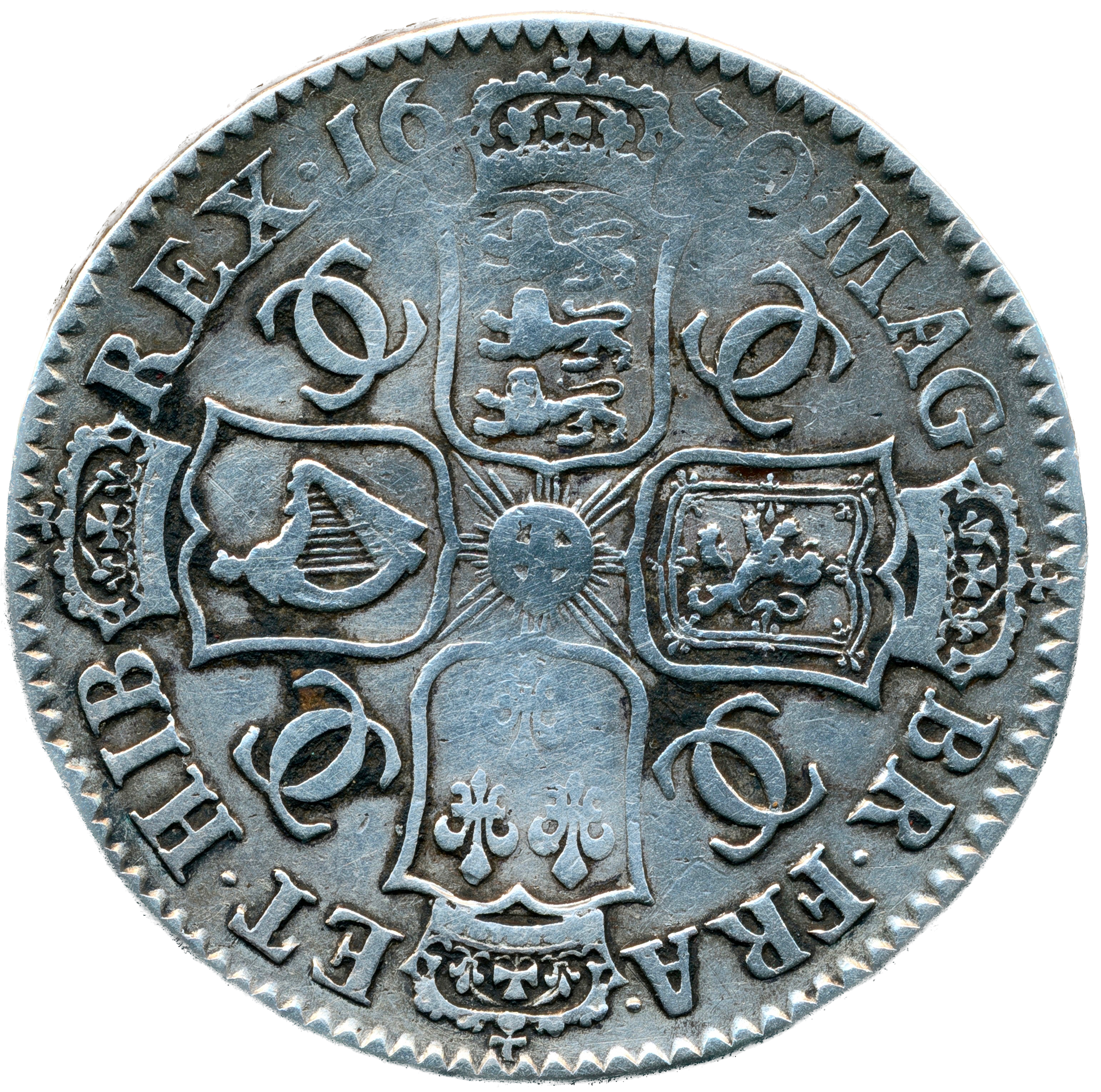 1670 Halfcrown Third bust Edge V. SECVNDO MRG error S3365 ESC 455var Extremely rare (R3) GF