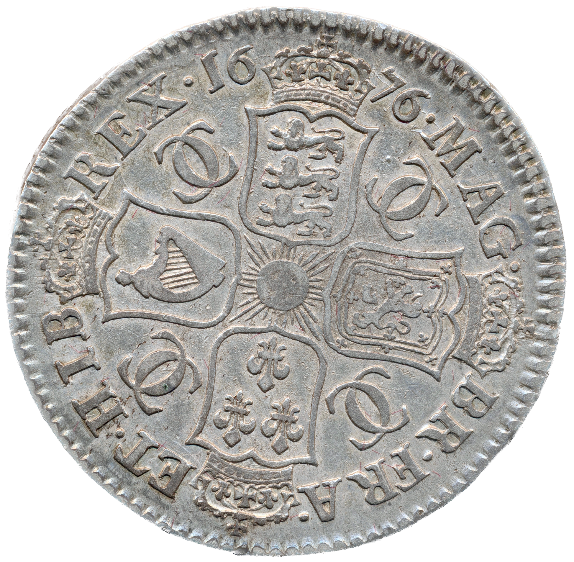 1676 Halfcrown Fourth bust Edge V. OCTAVO S3367 ESC 471 Scarce AVF