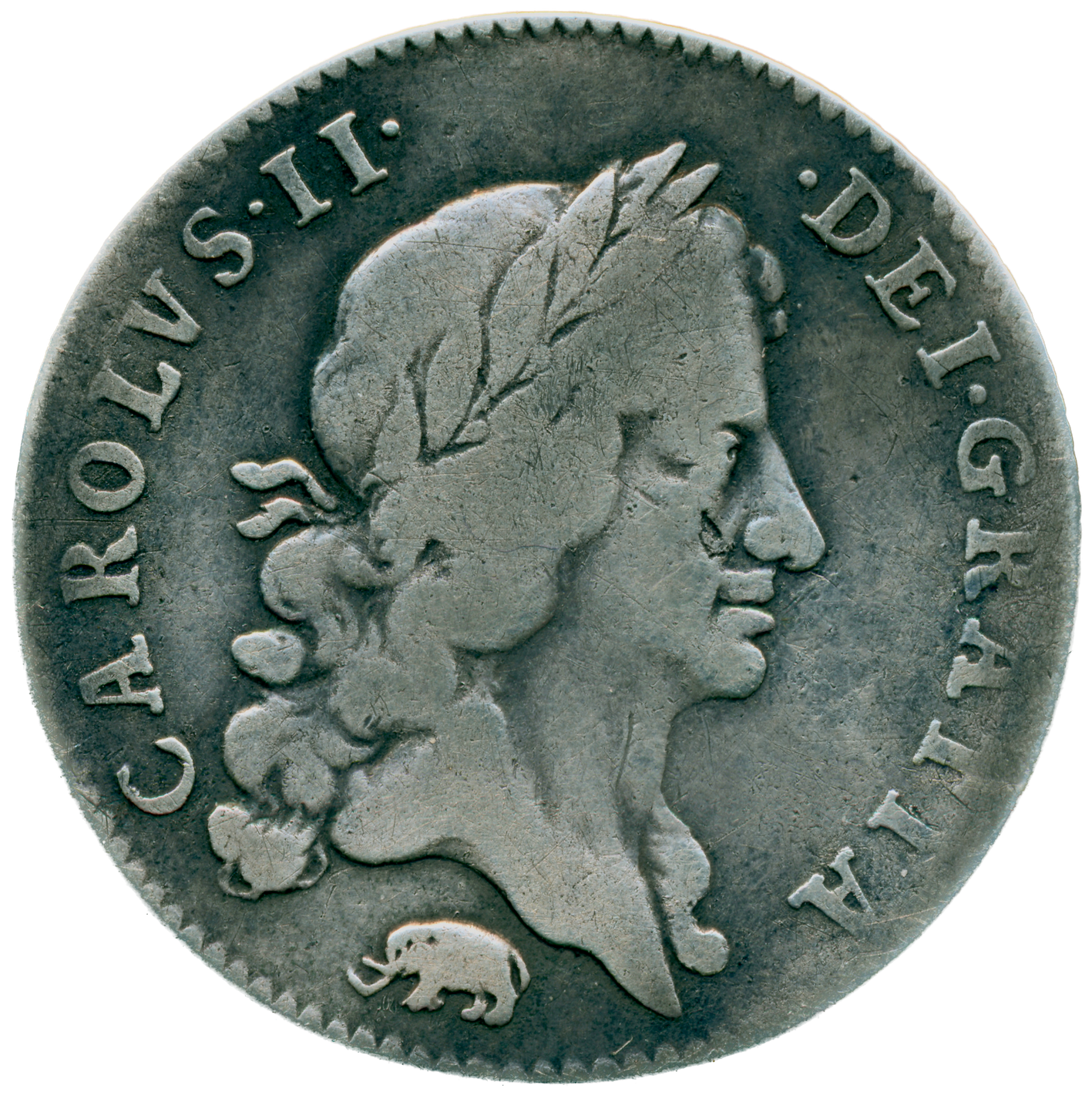 1666 Shilling Guinea head Elephant below bust S3374 ESC 509 Excessively rare (R4) F