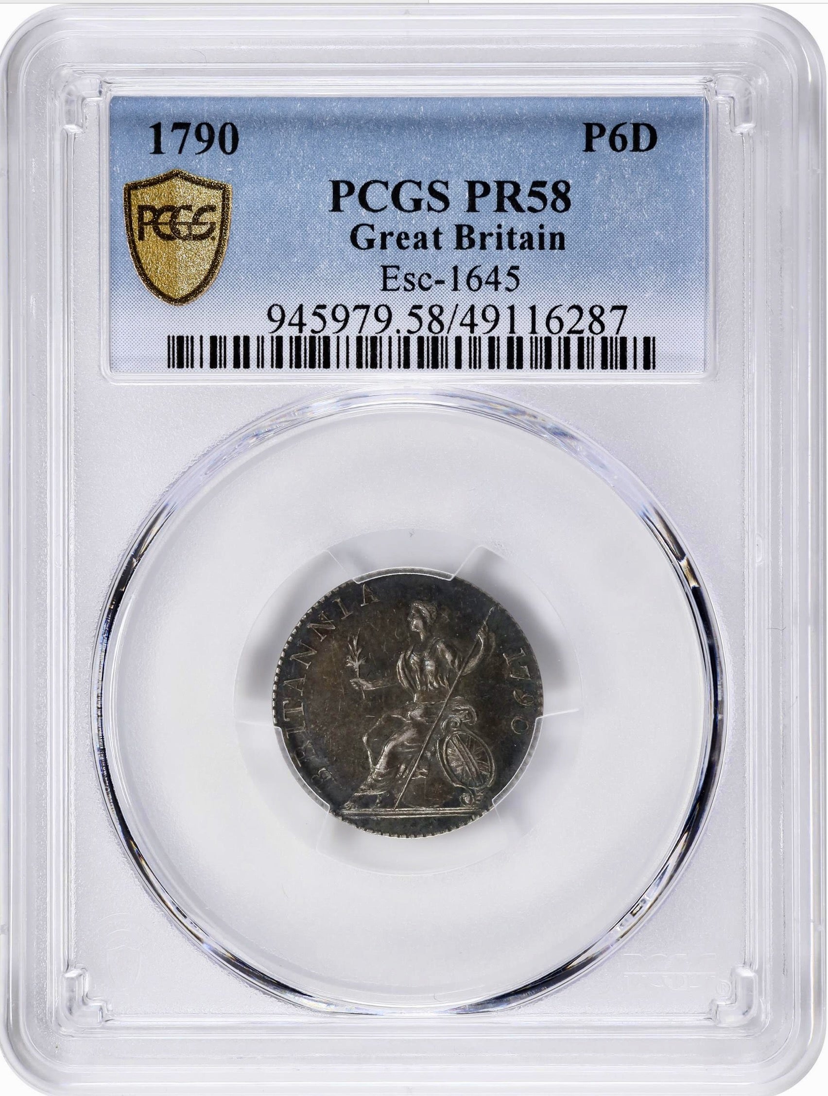 1790 sixpence pattern in silver ESC 2219 Proof 58