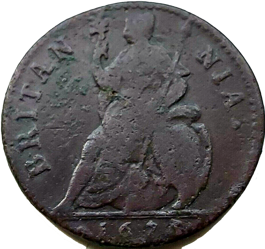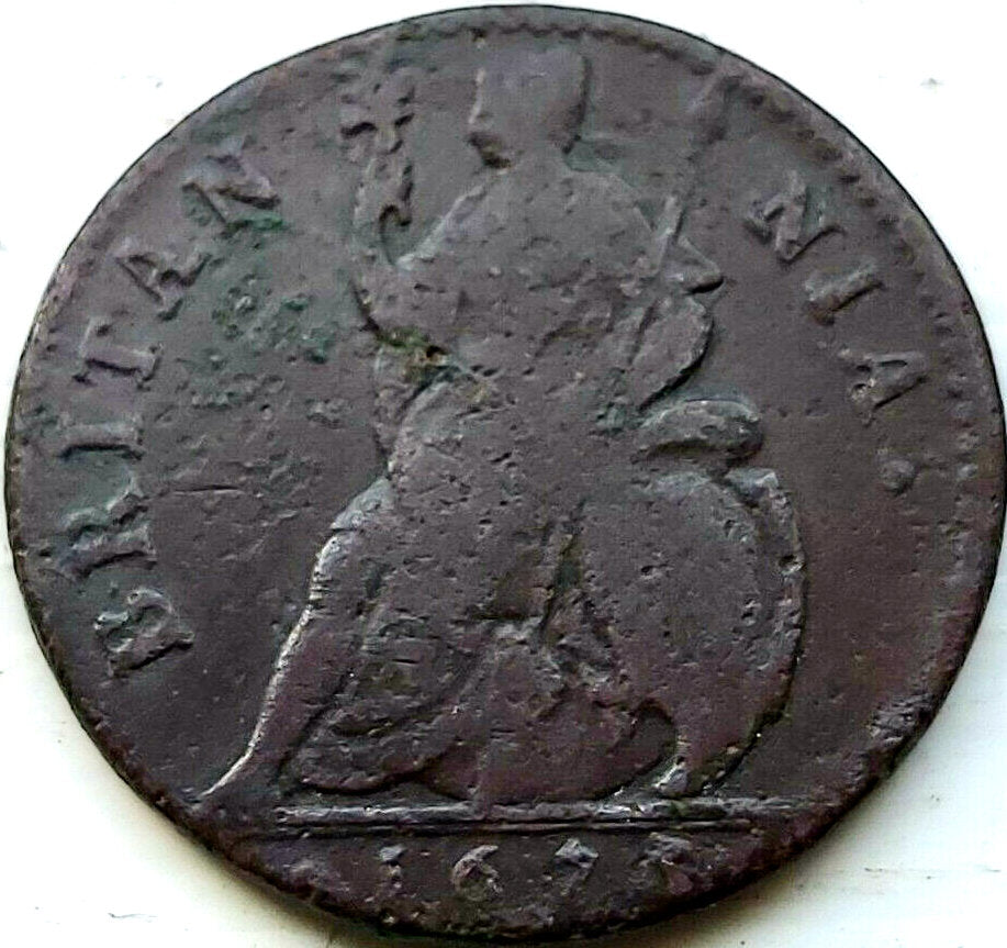 1673 Farthing S3394 BMC 525 No obverse stops NF Extremely rare