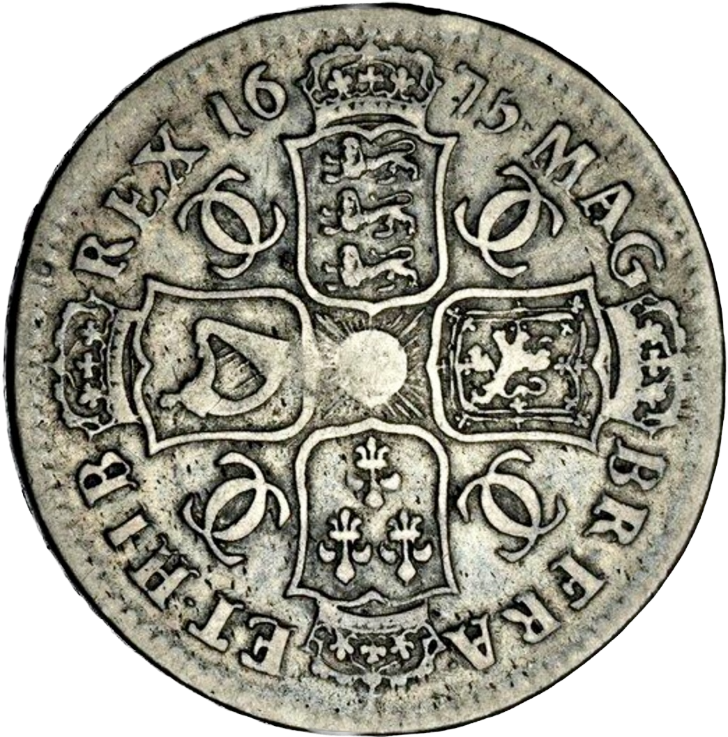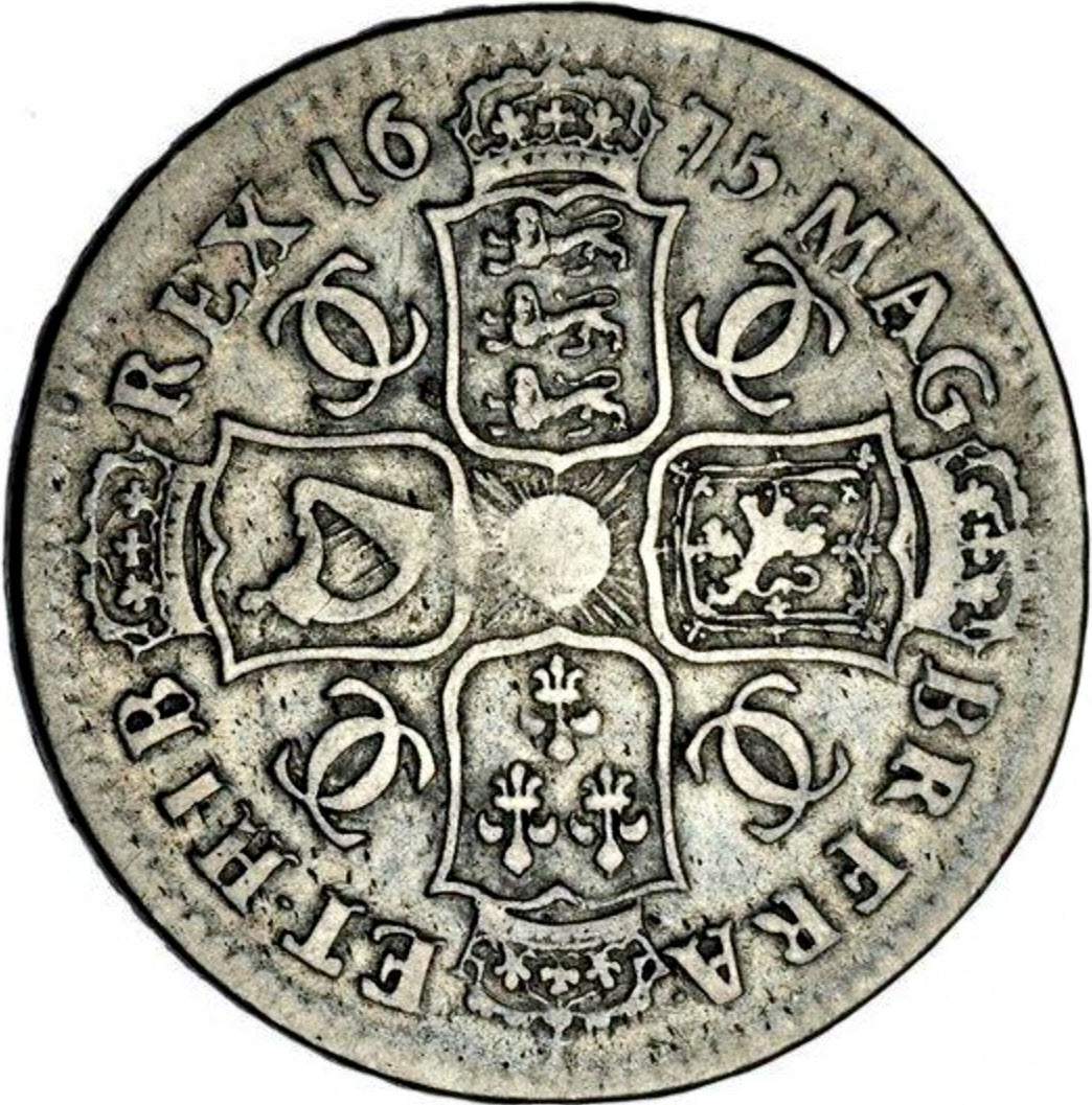 1675 Halfcrown Fourth bust Edge V. SEPTIMO S3367 Retrograde 1 ESC 470 Rare (R2) F/GF