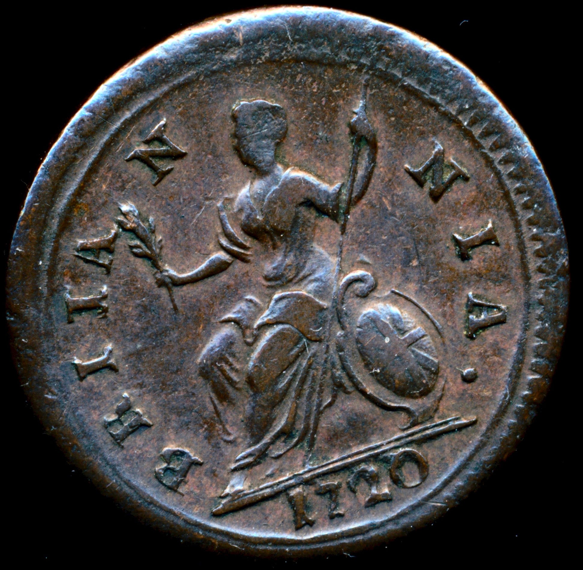 1720 Farthing S3662 BMC 818 Small obv letters Large 0 NEF