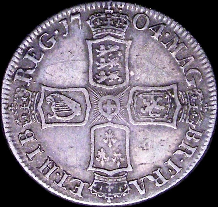 1704 Shilling Second bust Plain in angles S3587 ESC 1389 Excessively rare (R5) GF/AVF
