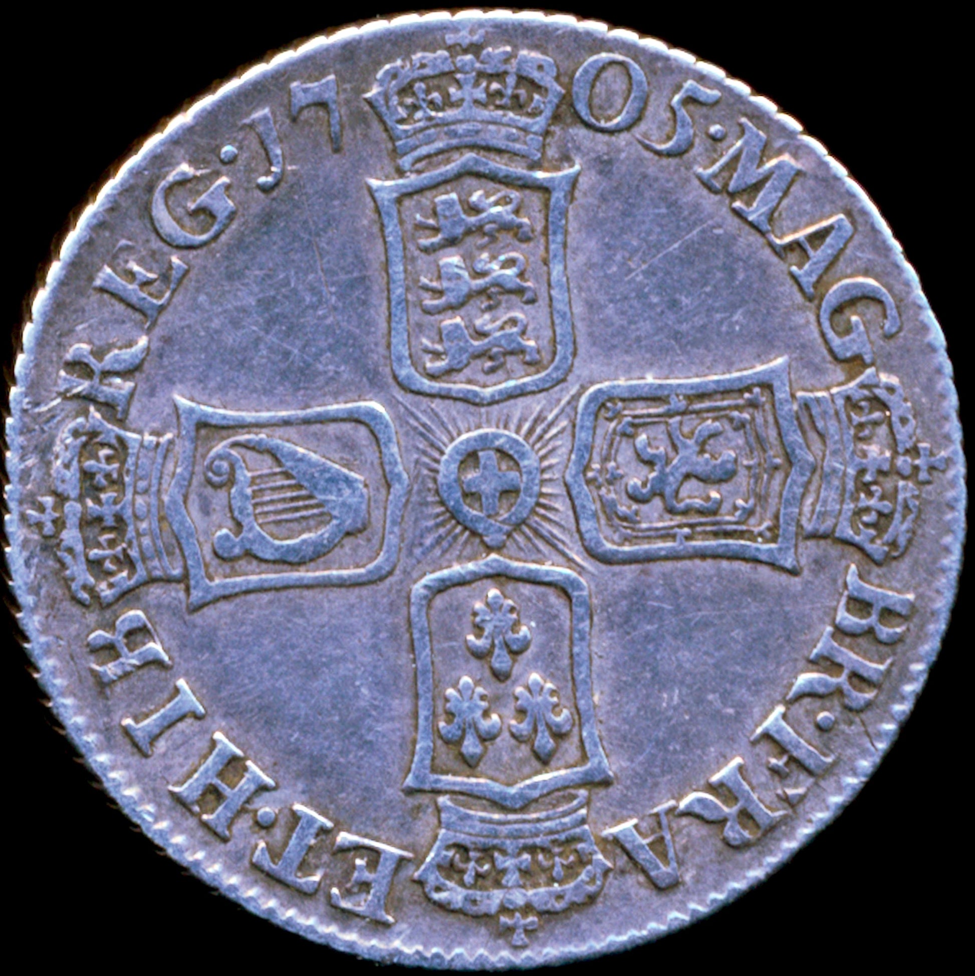 1705 Shilling Second bust Plain in angles S3587 ESC 1391 Very rare (R2) F/GF