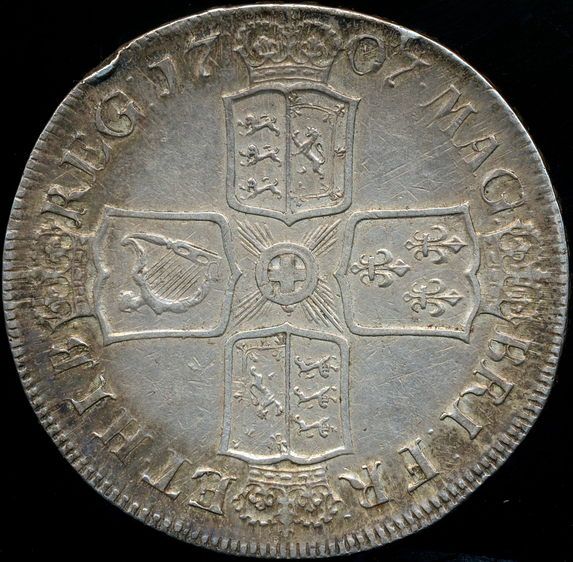 1707 Crown Second bust Edinburgh S3600 ESC 1352 VF/GVF