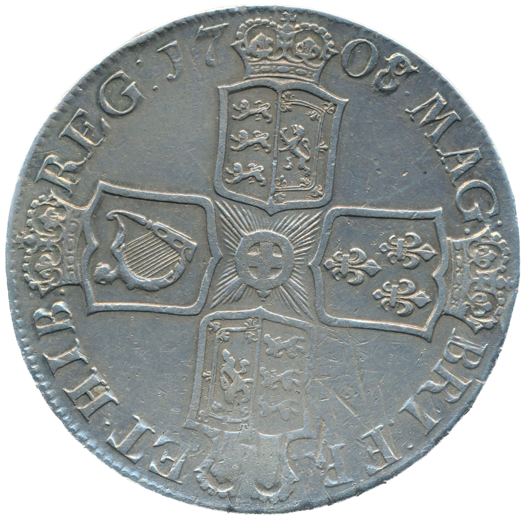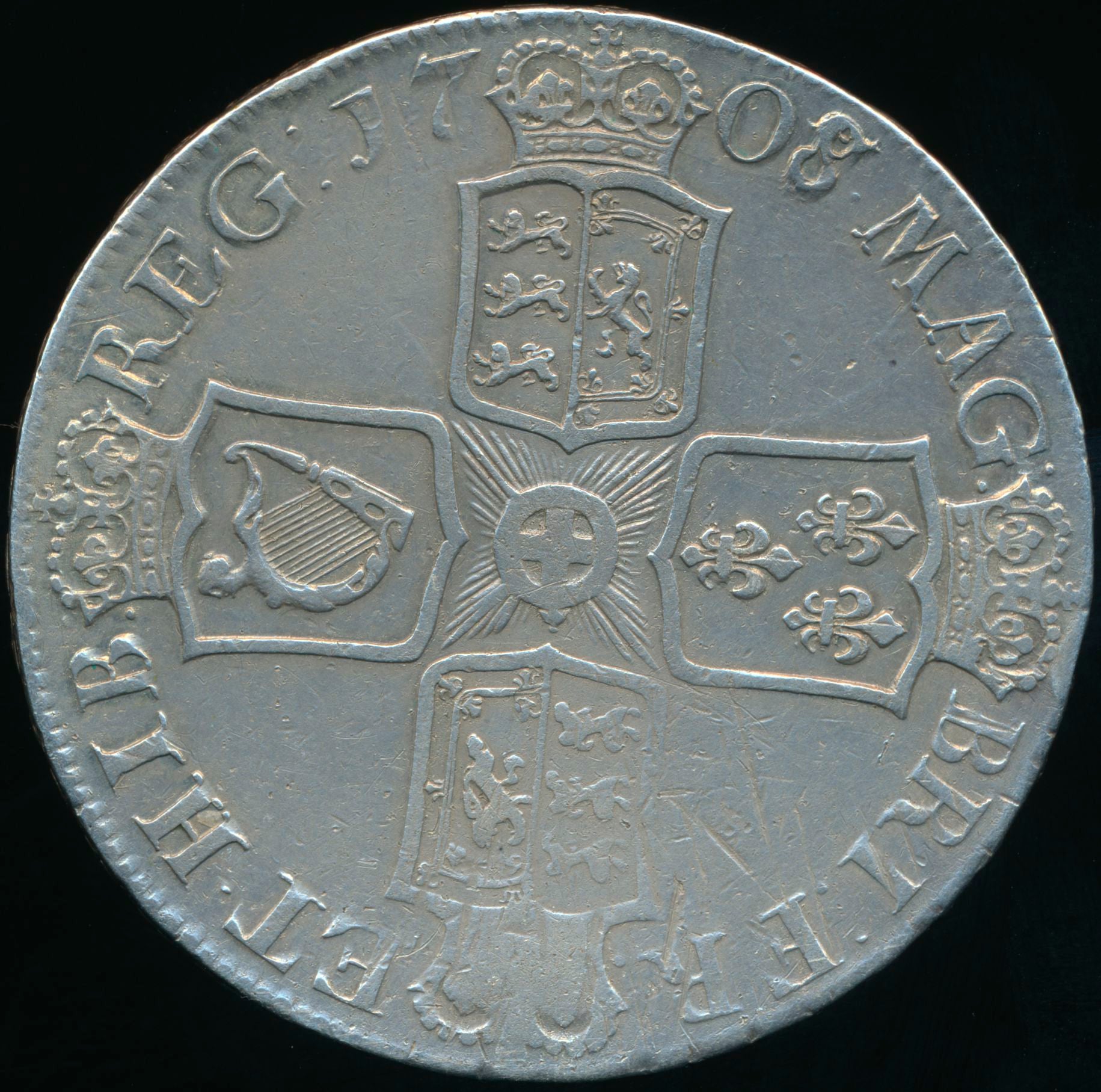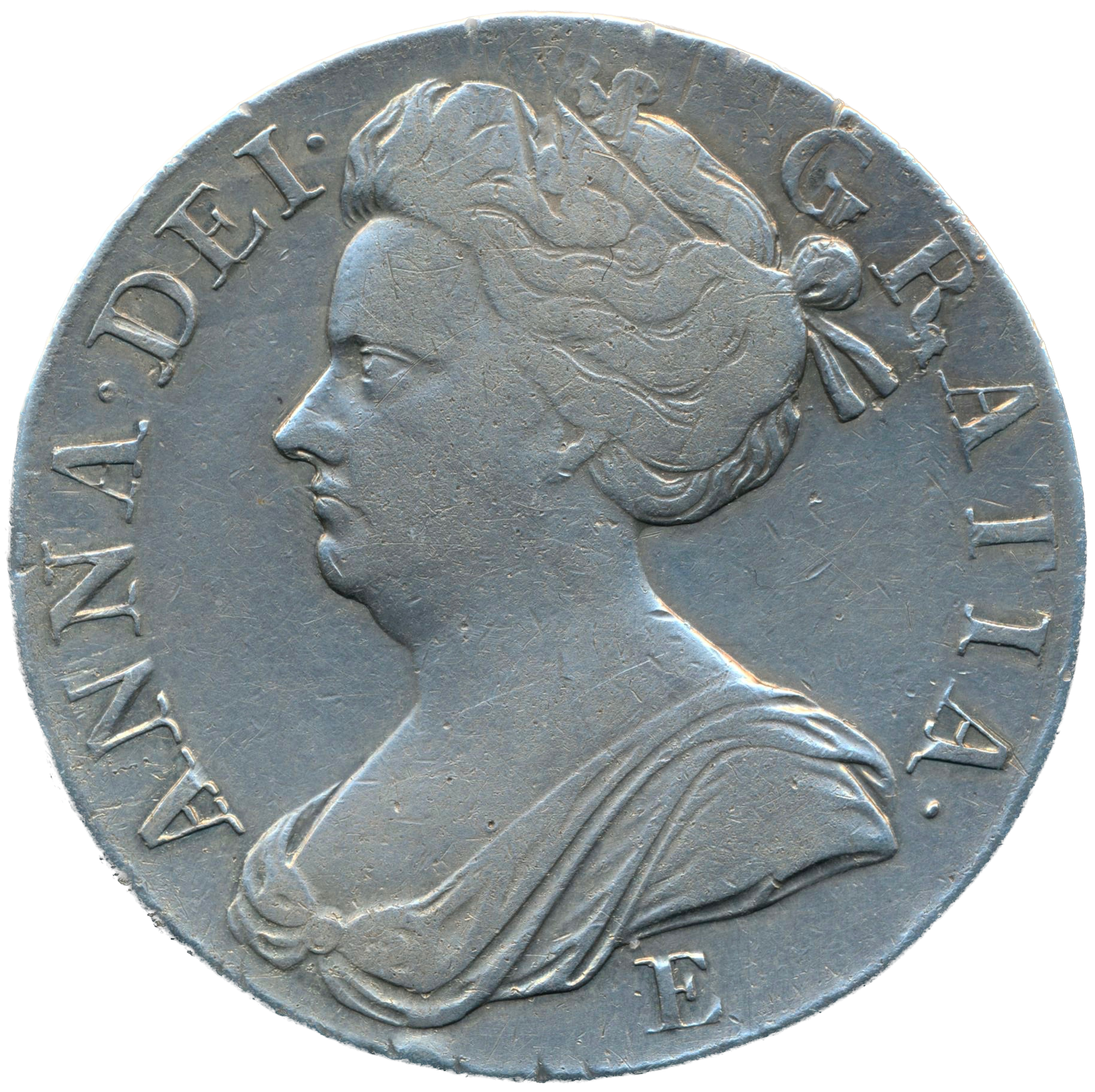 1708/7 Crown Second bust Edinburgh S3600 ESC 1355 Scarce GF/AVF