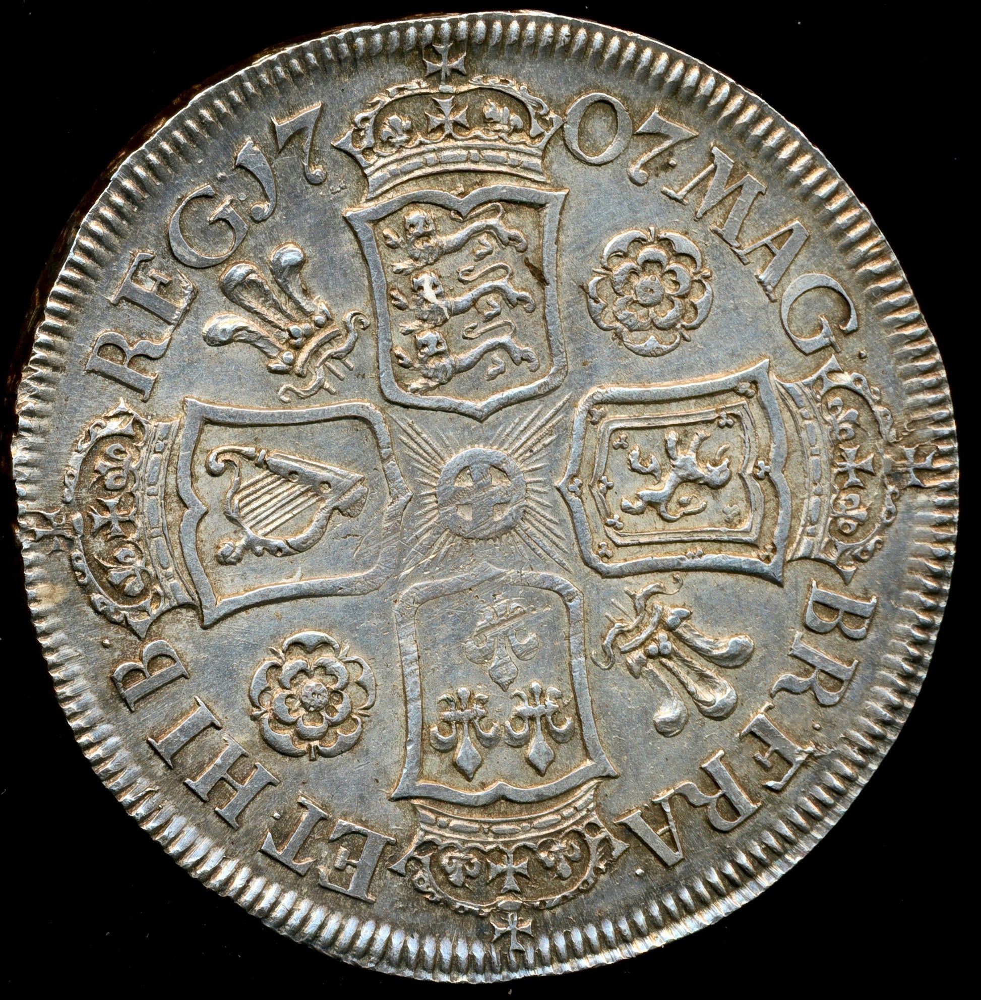 1707 Halfcrown First bust Roses and plumes Edge SEXTO S3582 ESC 1364 GVF/NEF