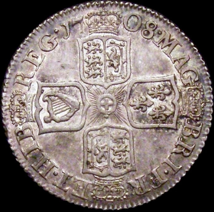 1708 Shilling S3610 ESC 1399 Third bust Plain angles EF