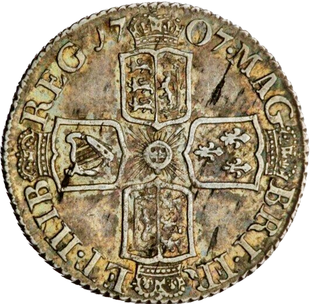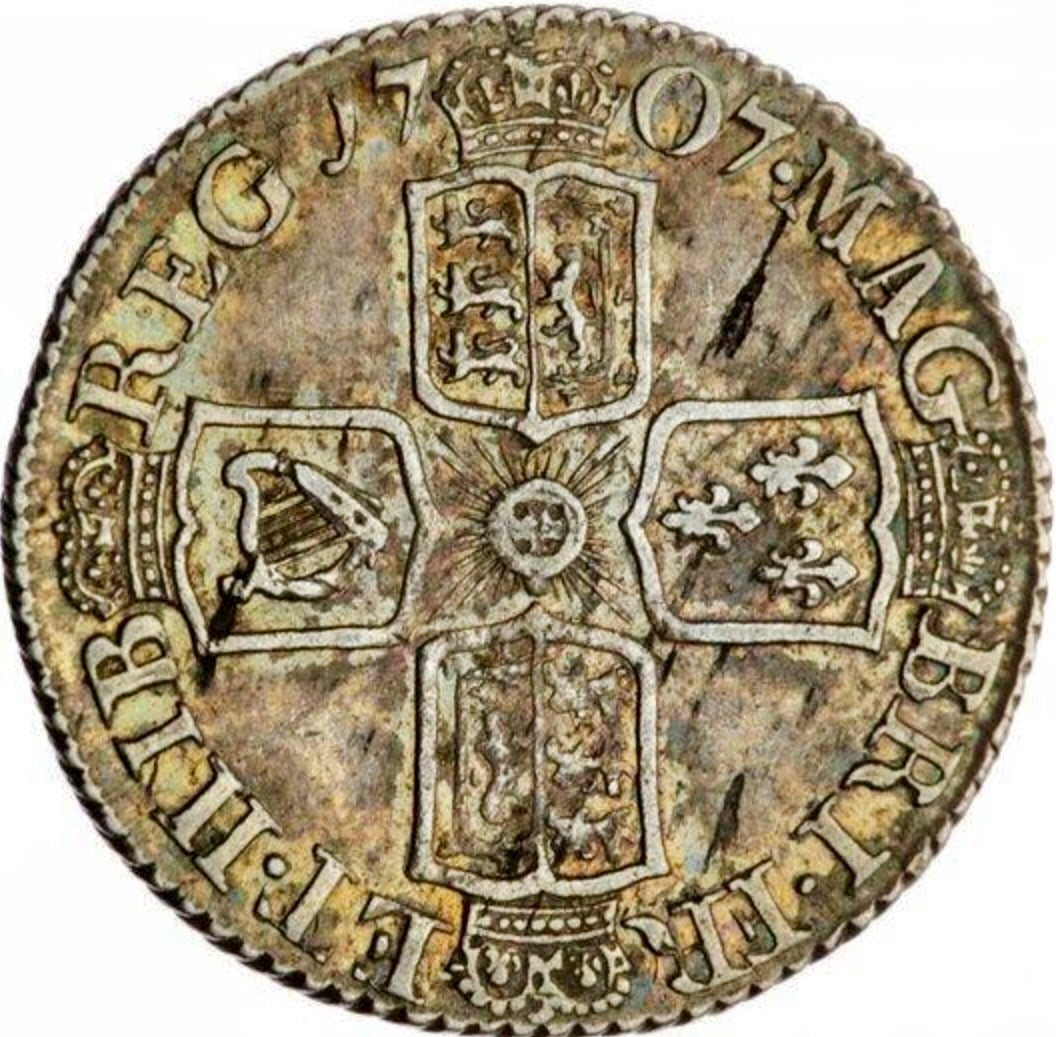 1707 Sixpence Plain in angles Wide shields S3619 ESC 1453 Scarce GVF