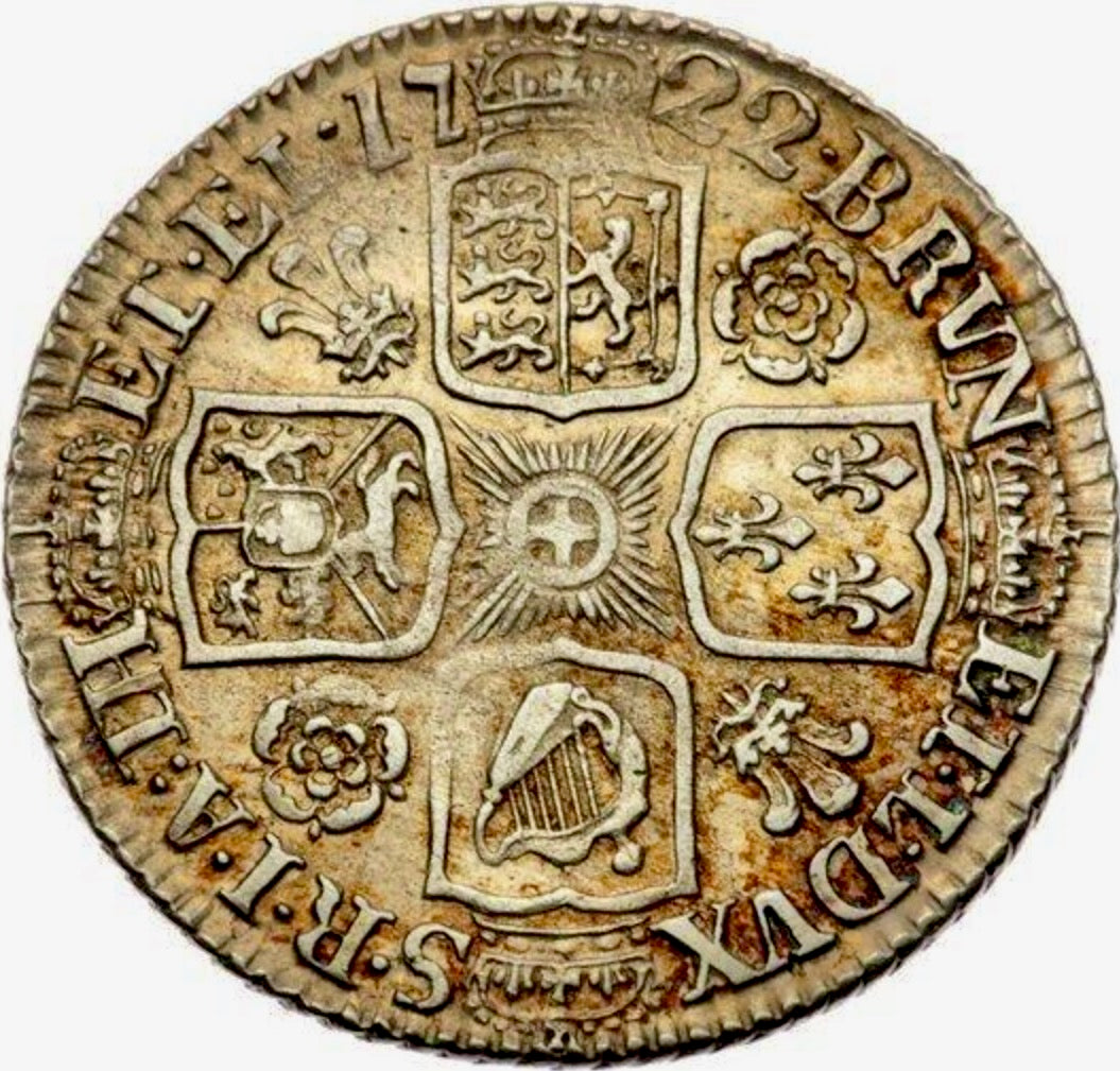 1722 Shilling First bust Roses and plumes S3645 ESC 1581 Scarce EF or near so