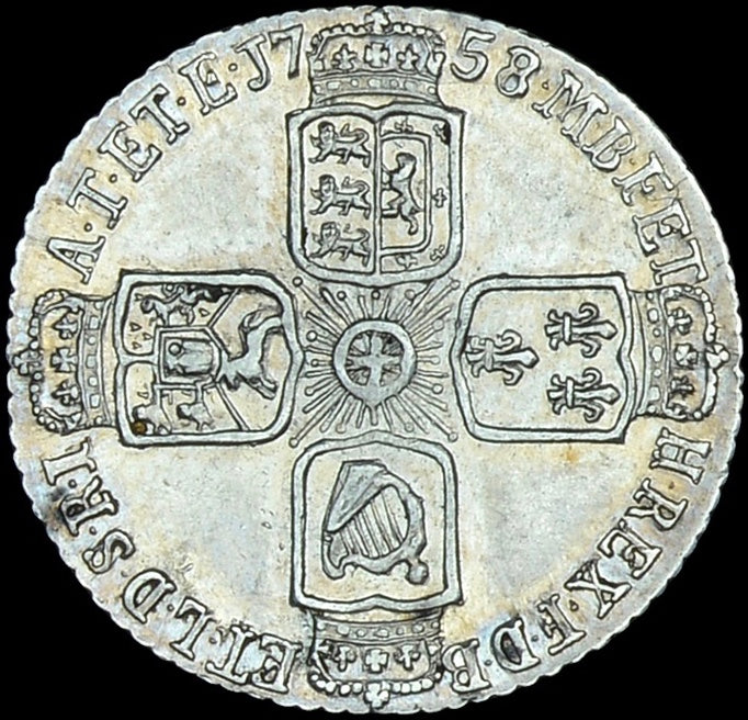 1758/7 Sixpence Old head Plain in angles S3711 ESC 1764 Very rare (R3) NEF/EF
