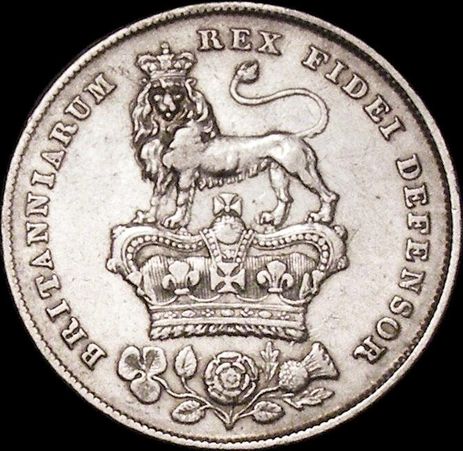 1827 Shilling Bare head S3812 ESC 2412 Rare NEF
