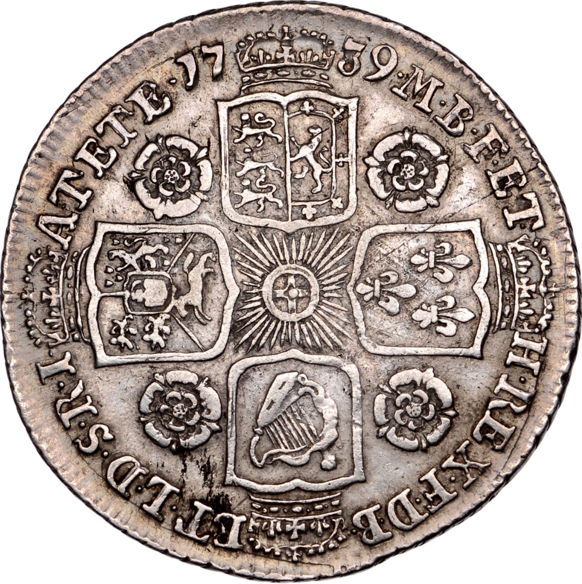 1739 Shilling Young head Roses in angles Larger lettering S3701 ESC 1716 NEF