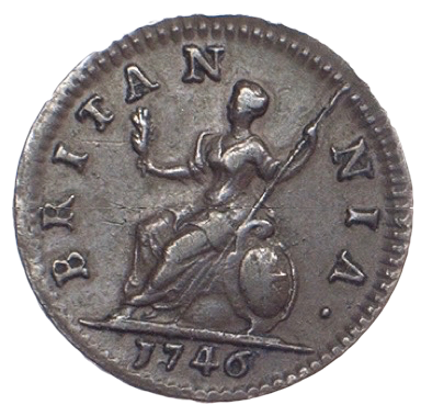 1746 Farthing S3722 BMC 888 V over U in GEORGIVS Extremely rare GVF