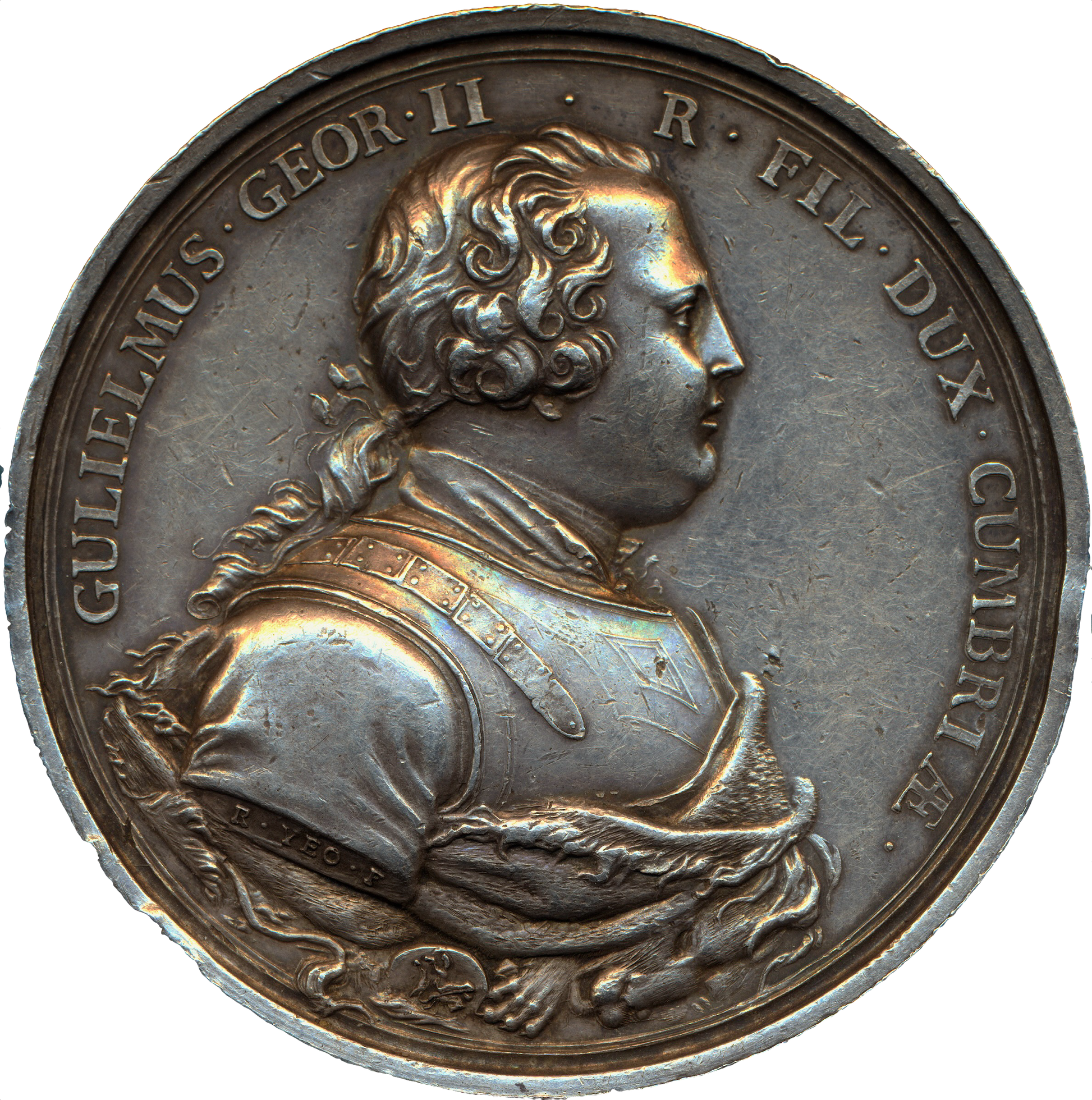 Obv: Armoured bust of the Duke of Cumberland right
