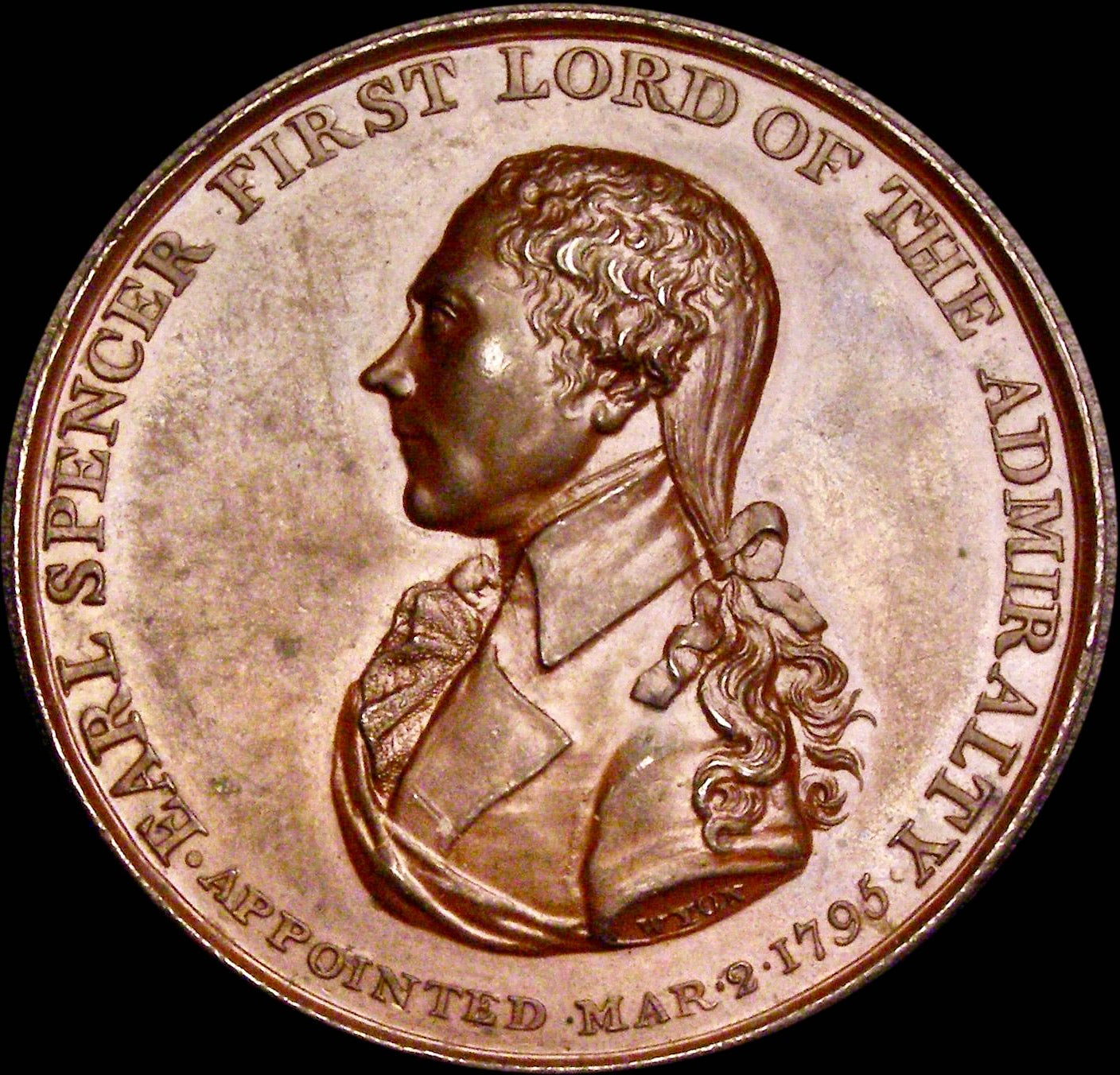Obverse: Bust of Earl Spencer left wearing naval uniform