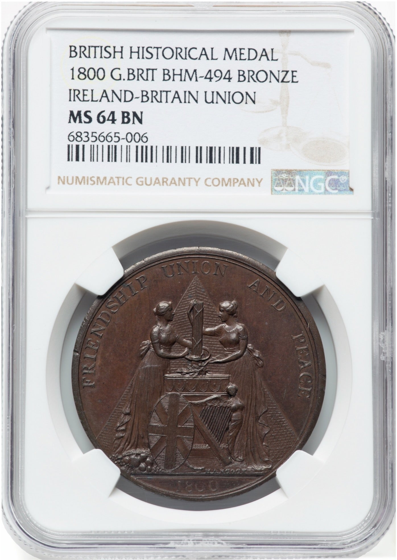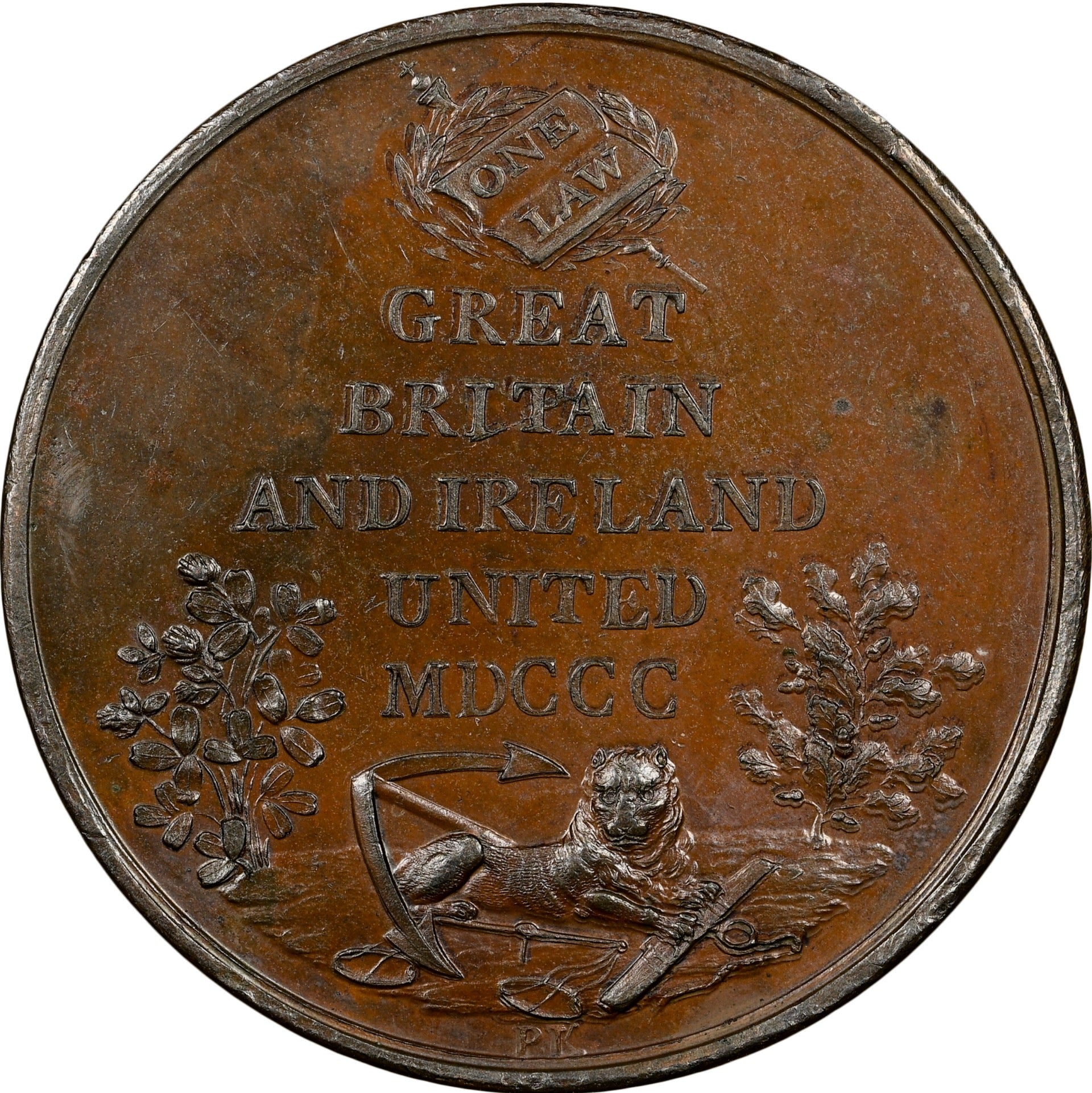 1800 Union of Great Britain and Ireland, Act Passed bronze medal BHM 494 E917 MS64BN