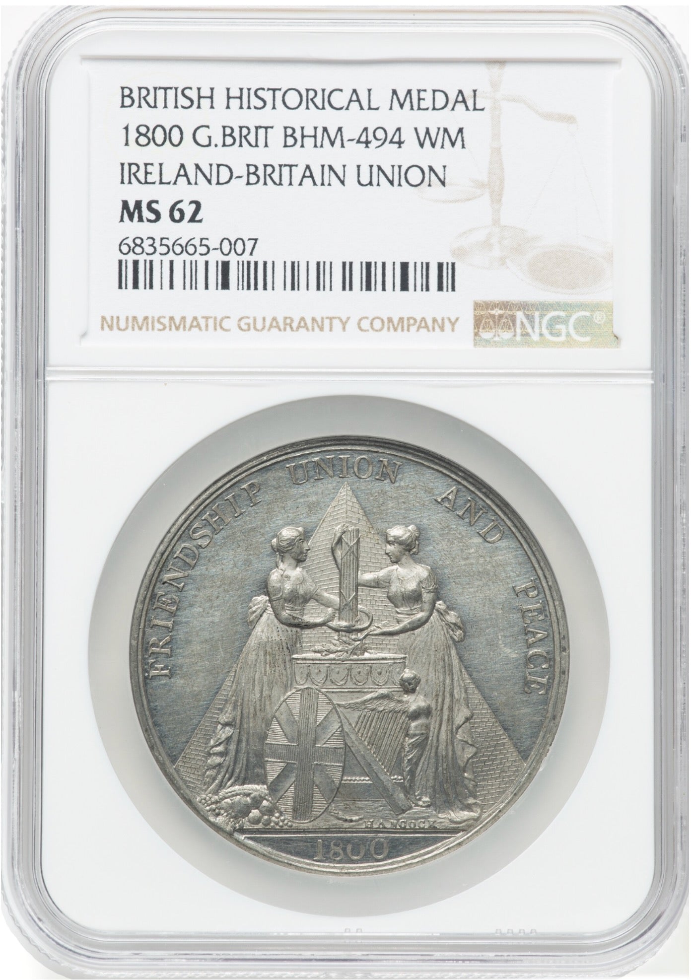 1800 Union of Great Britain and Ireland, Act Passed white metal medal BHM 494 E917 MS62BN