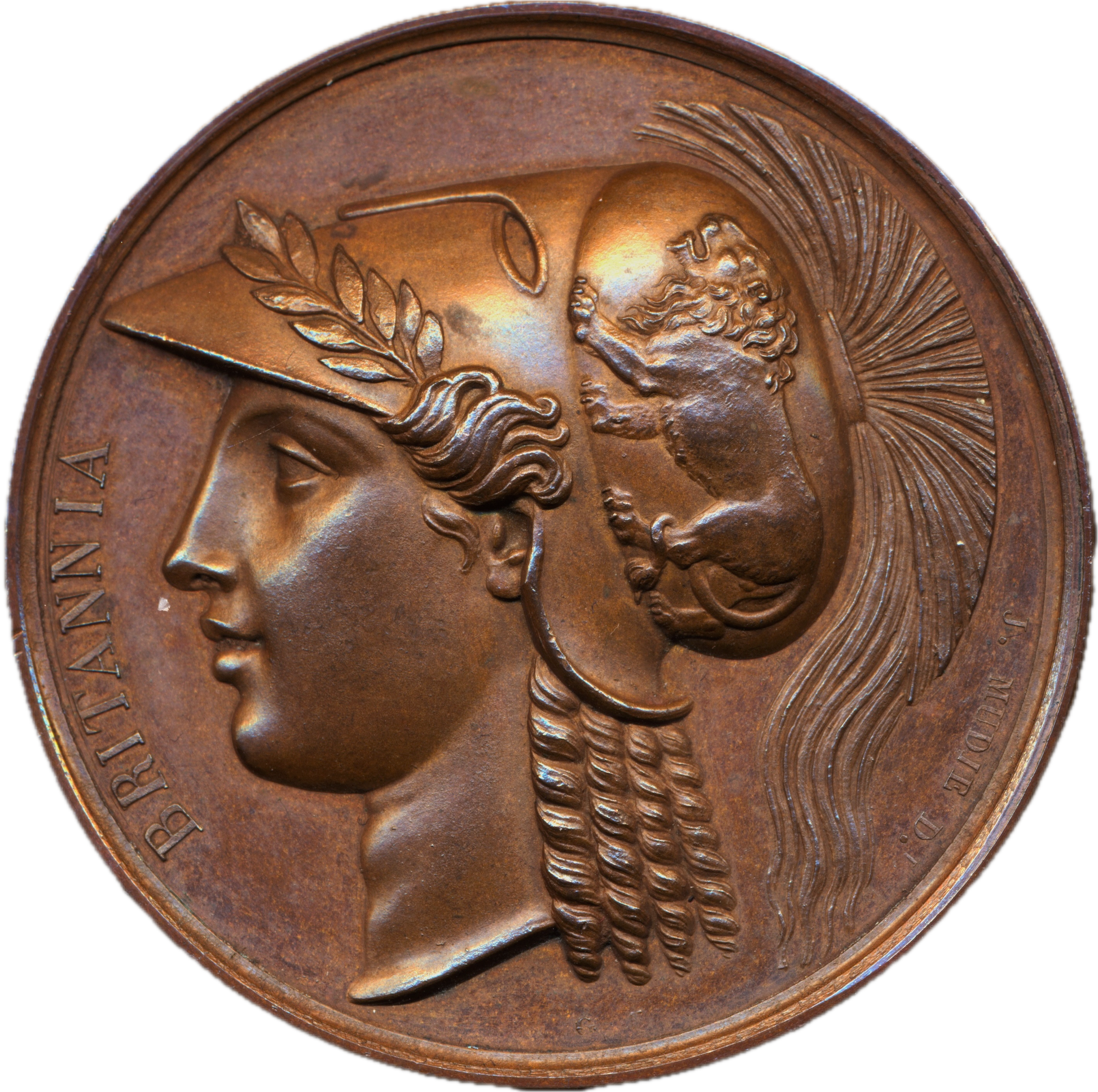 Obv: Head of Britannia in a Corinthian helmet.