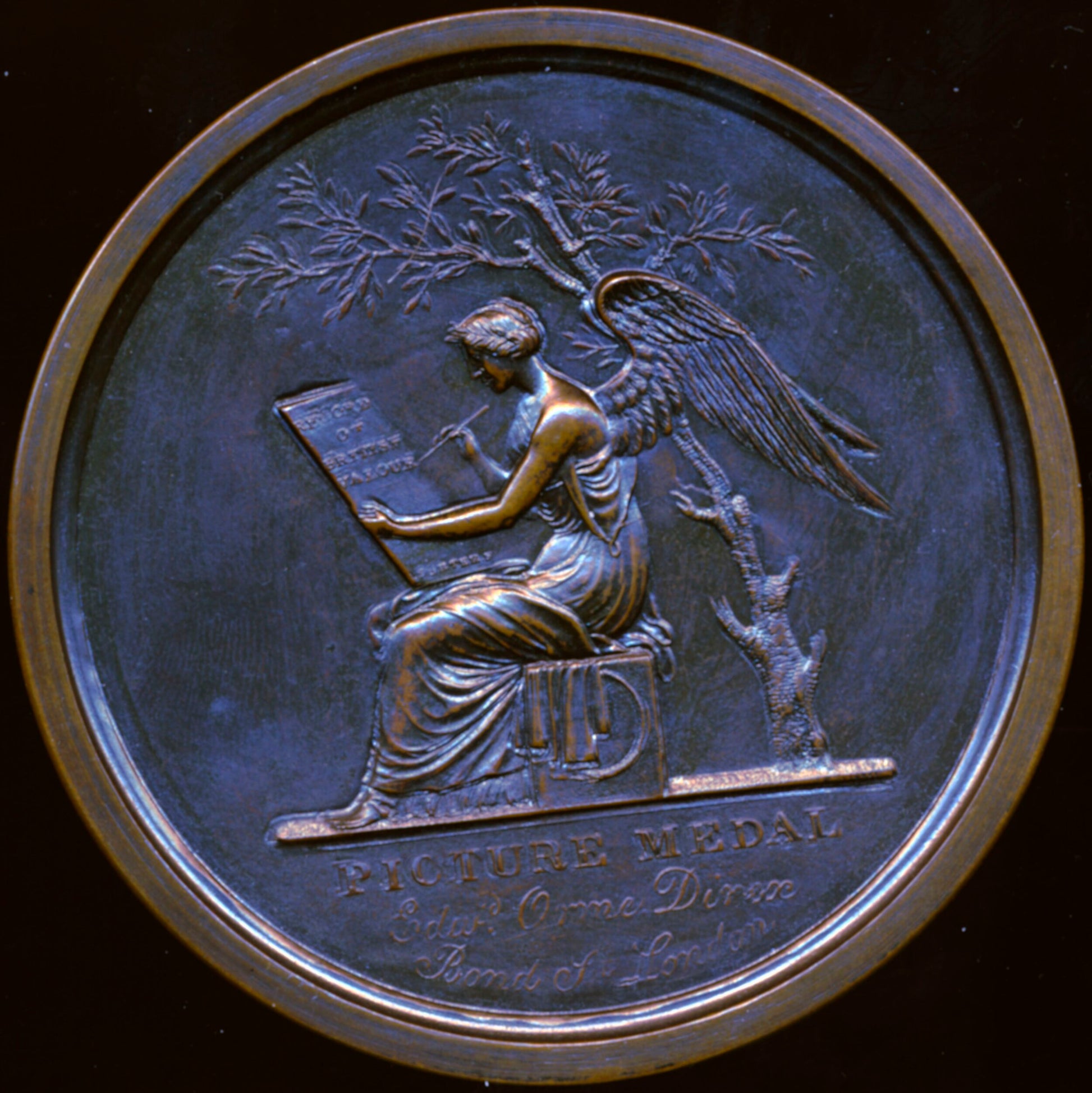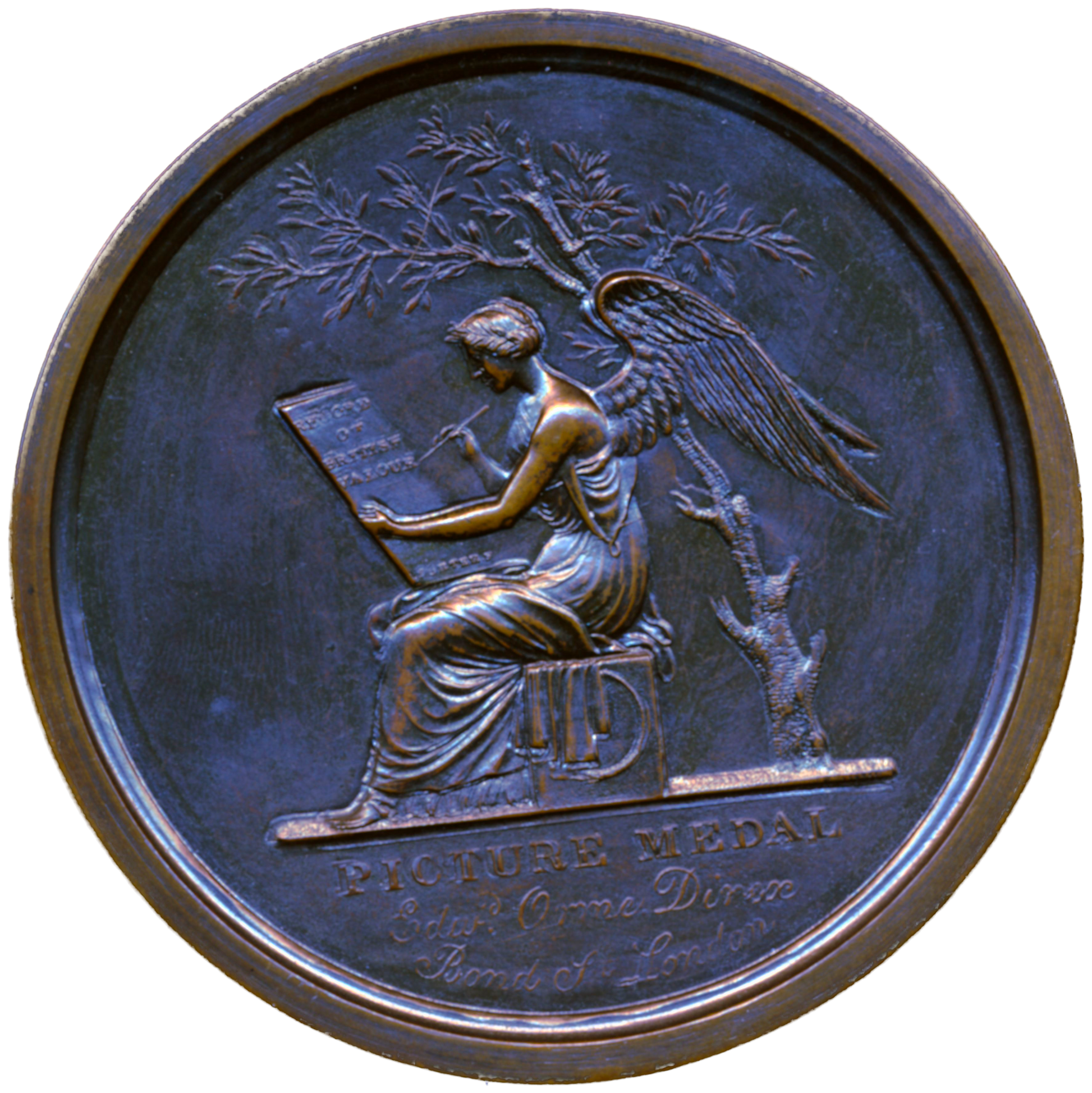 Reverse: Victory, seated beneath a tree, inscribes a tablet RECORD OF BRITISH VALOUR.