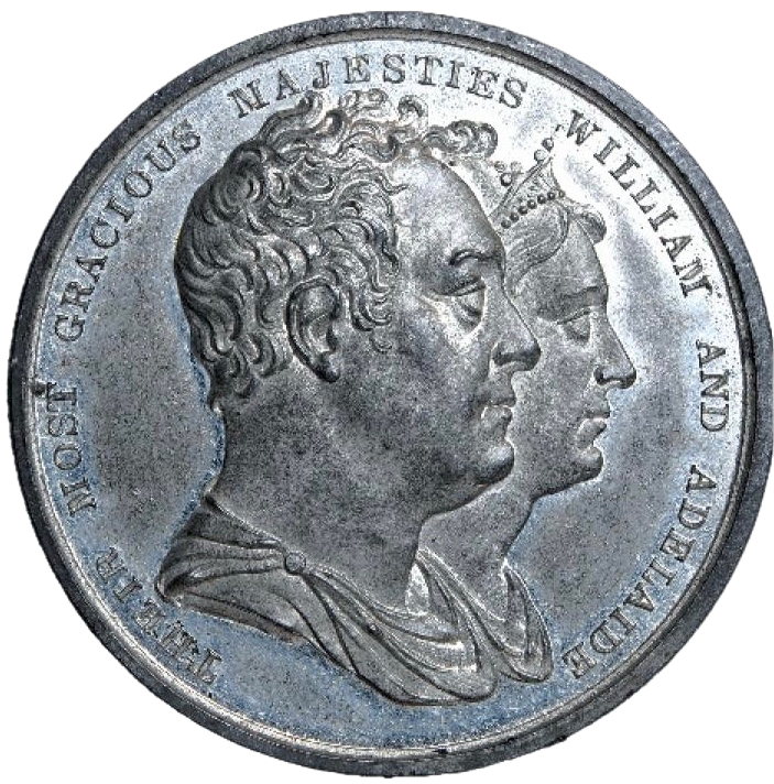 Obverse: Conjoined busts of William IV and Adelaide, right, he bare headed, she, diademed.
