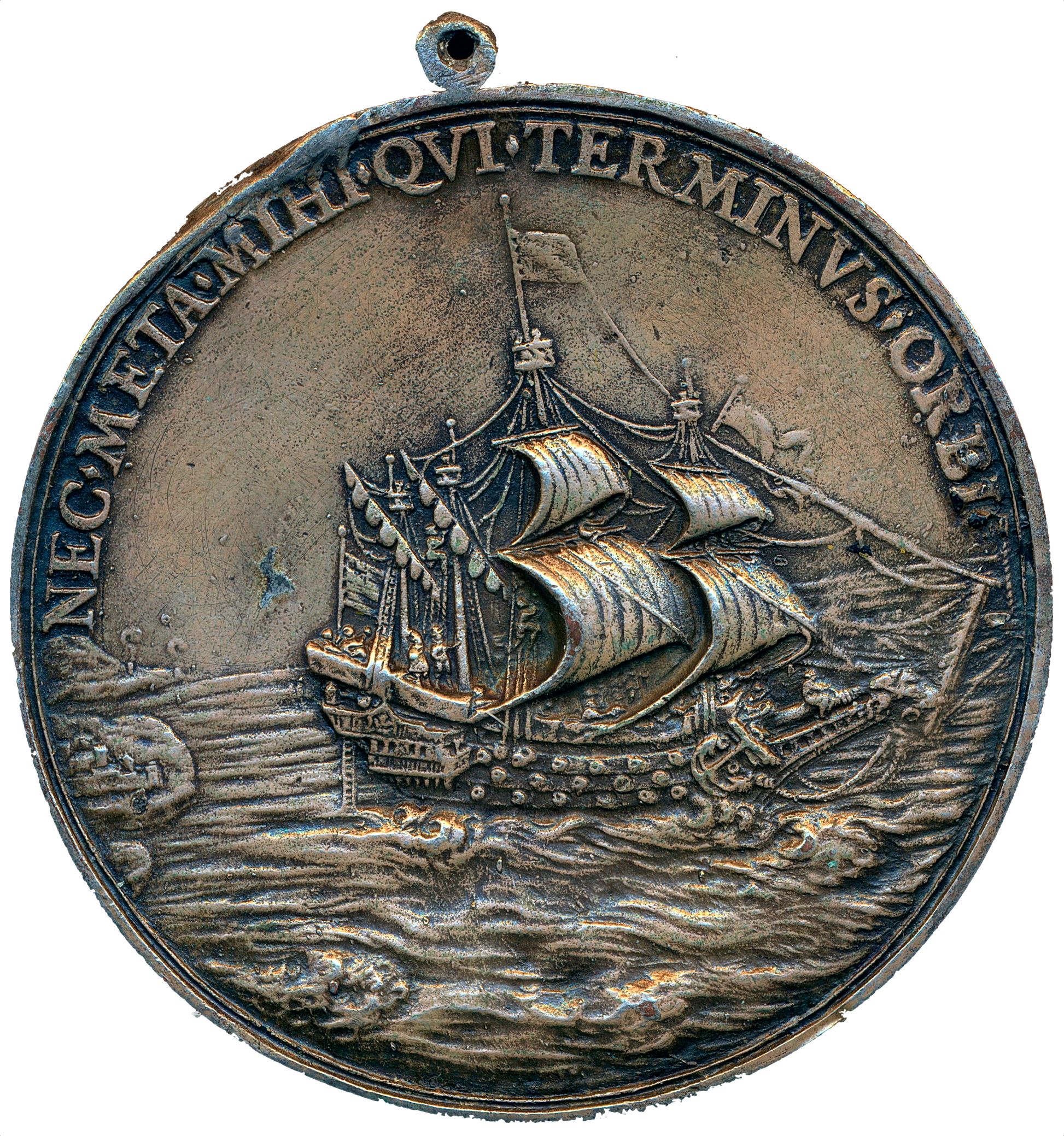 Reverse: British warship in full sail NEC. META. MIHI. QVI. TERMINVS. ORBI.