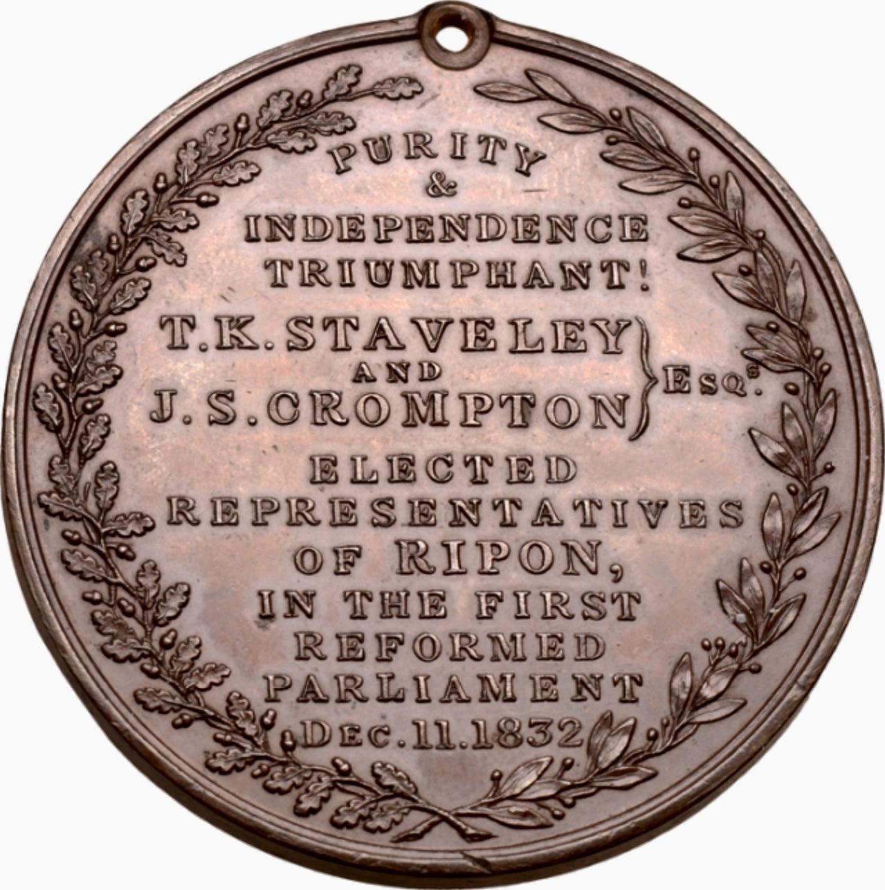 1832 The Reform Bill passed 45mm copper medal by BHM 1586 NEF