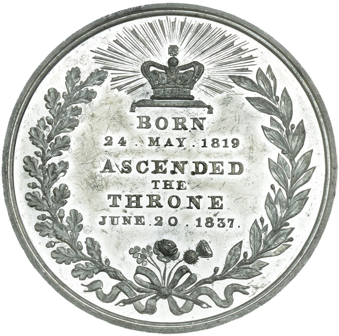 1837 Victoria accession 62mm white metal medal Very rare E1296 BHM 1756 NEF