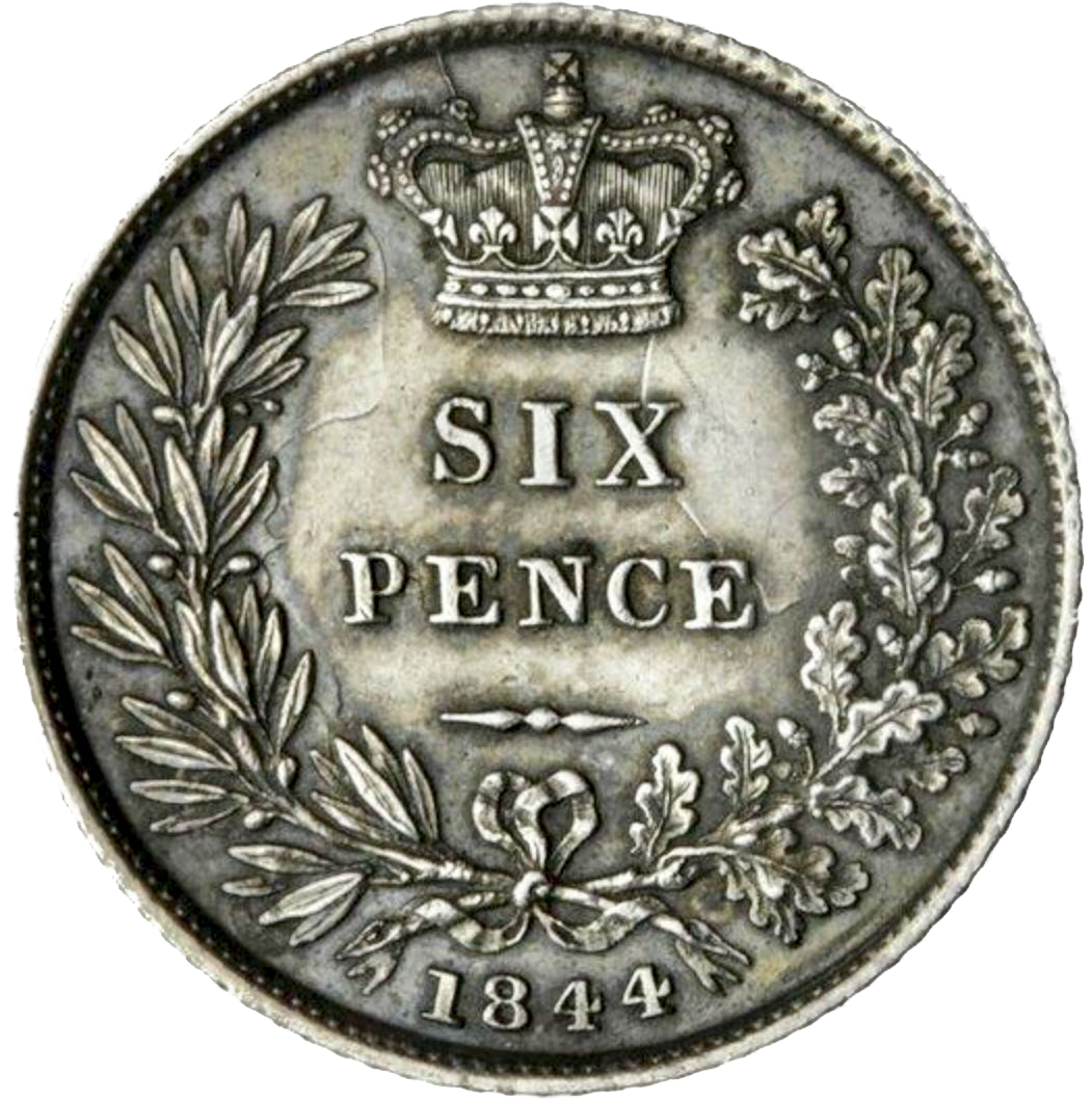 1844 Sixpence First young head normal 44 S3908 ESC 3178 Scarce EF