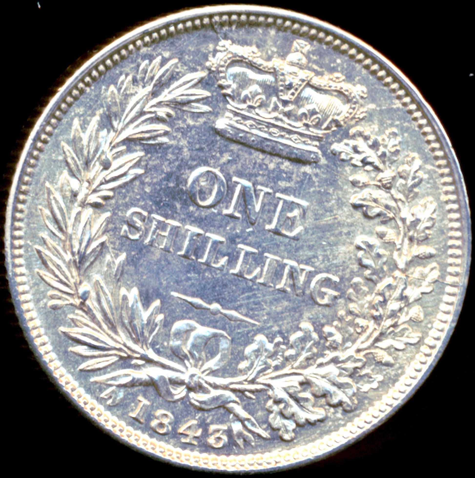 1843 Shilling Second young head S3904 ESC 2989 Rare AUNC