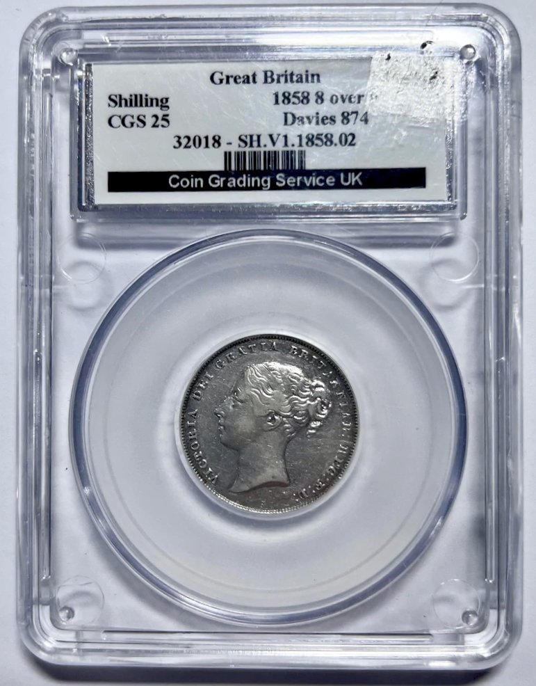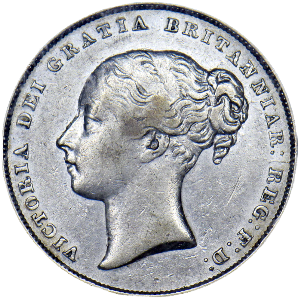 1858/6 Shilling Second young head S3904 ESC 3012 Rare (R?) CGS25