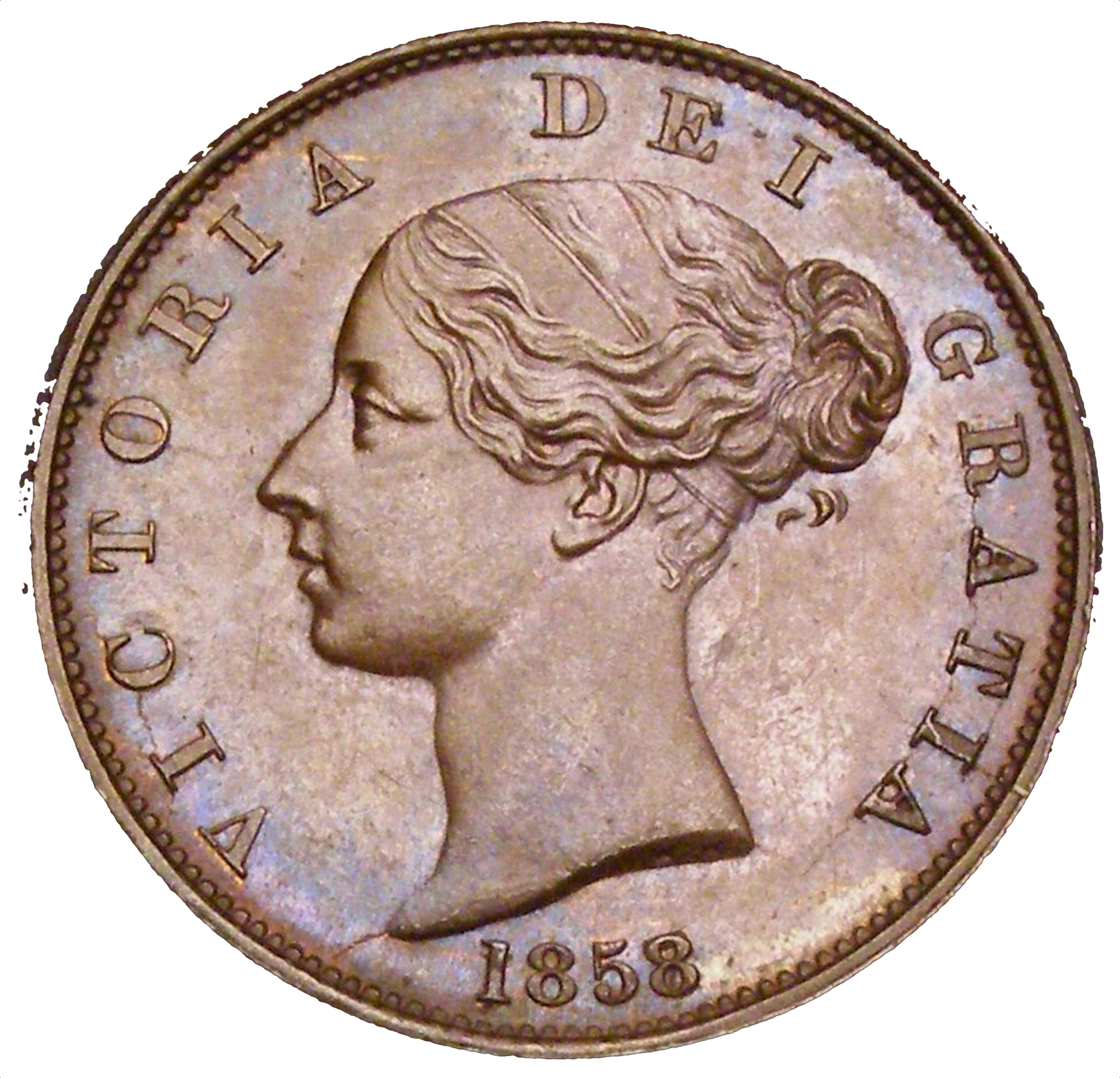 1858/7 Halfpenny S3949 BMC 1548 UNC