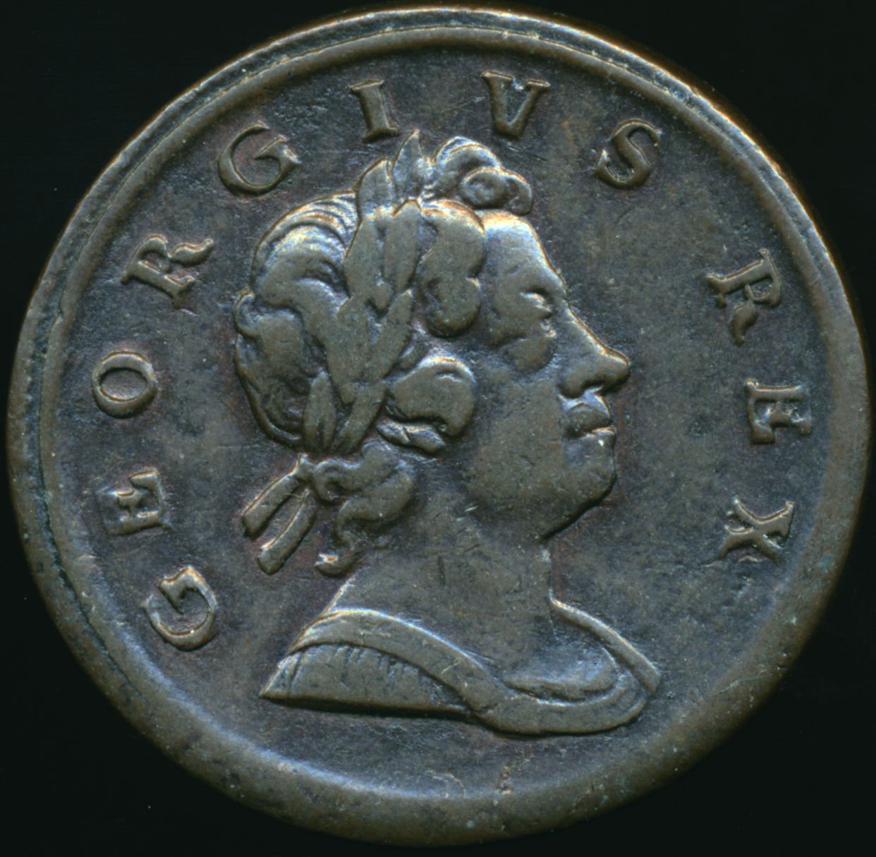 1718 Halfpenny Obverse no stops S3659 BMC 775 GVF Very rare