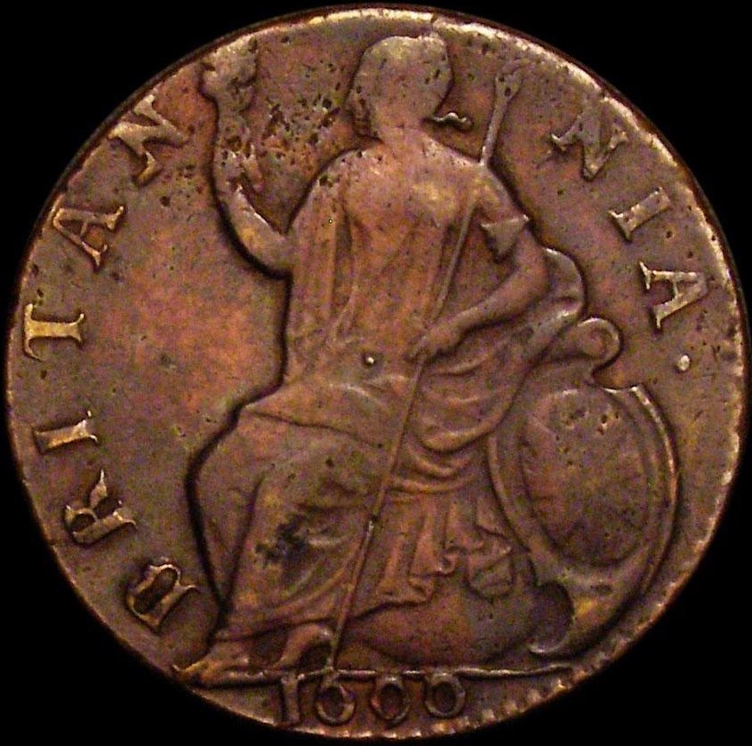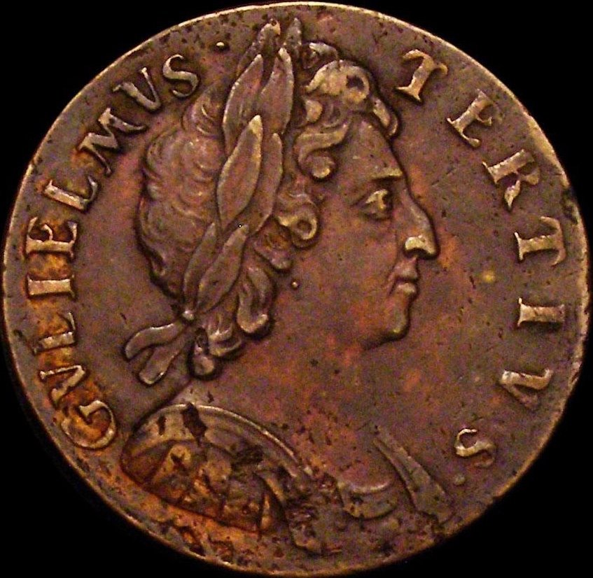 1696 Halfpenny (type 1) S3554 BMC 641 Scarce NEF/GVF